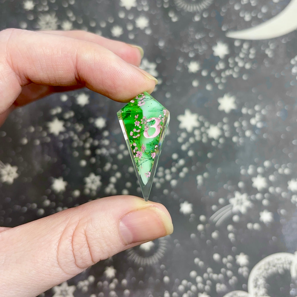 Disclaimer: This product is handmade and is susceptible to minor marks, sanding inconsistencies, gaps in inking, etc. I do my best to clearly specify and identify any quirks, but because everything I sell is personally crafted, occasionally I might miss something. No quirks will have a negative effect on the playability of the dice.