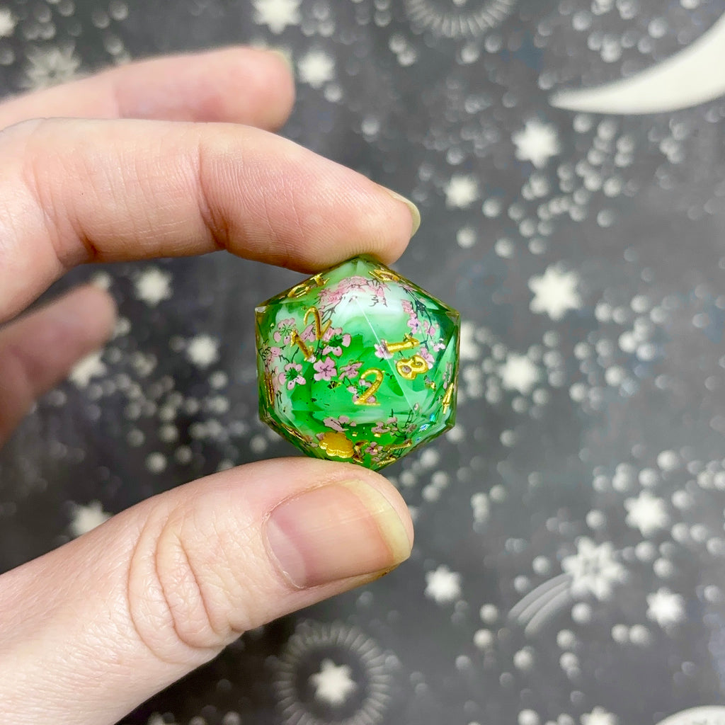 Disclaimer: This product is handmade and is susceptible to minor marks, sanding inconsistencies, gaps in inking, etc. I do my best to clearly specify and identify any quirks, but because everything I sell is personally crafted, occasionally I might miss something. No quirks will have a negative effect on the playability of the dice.