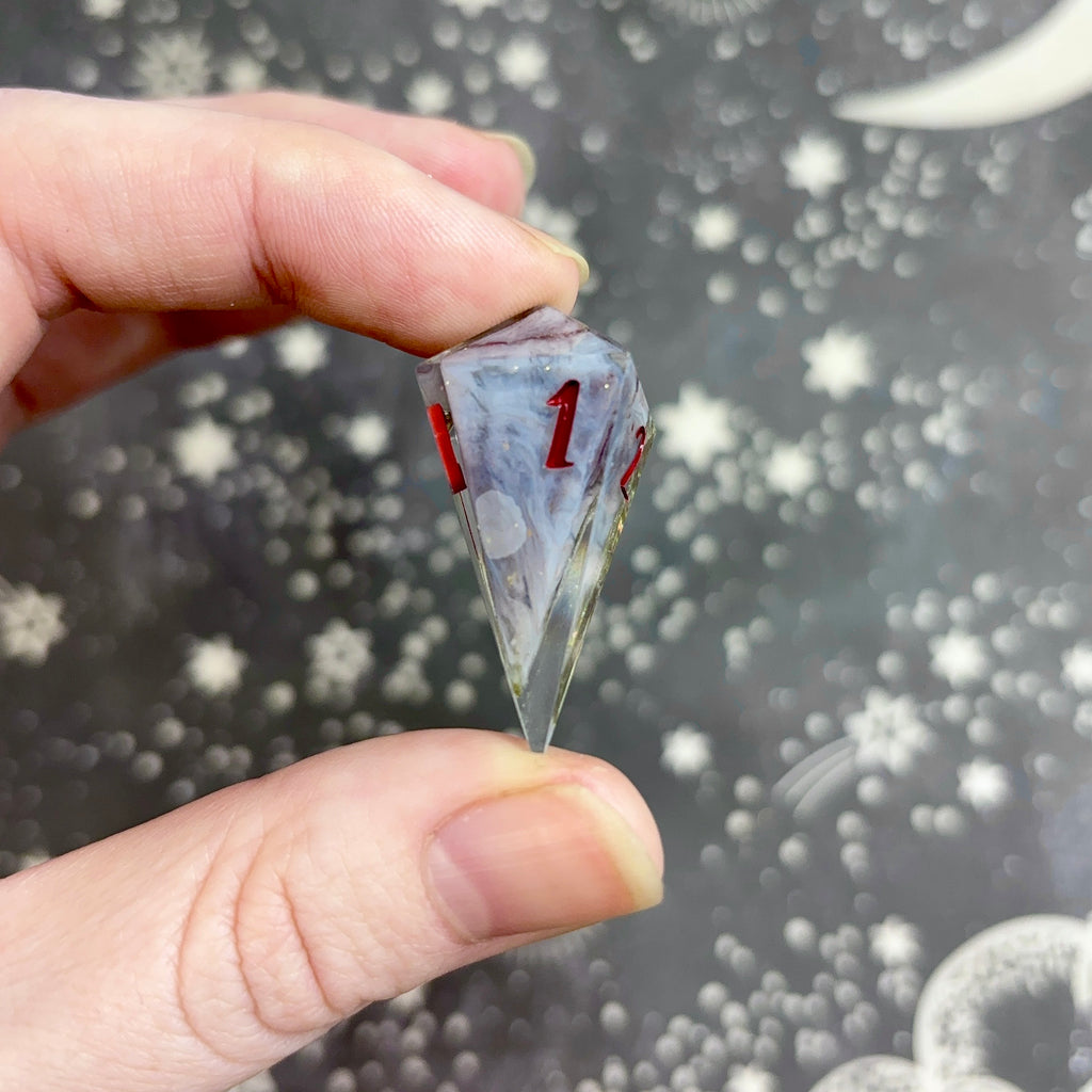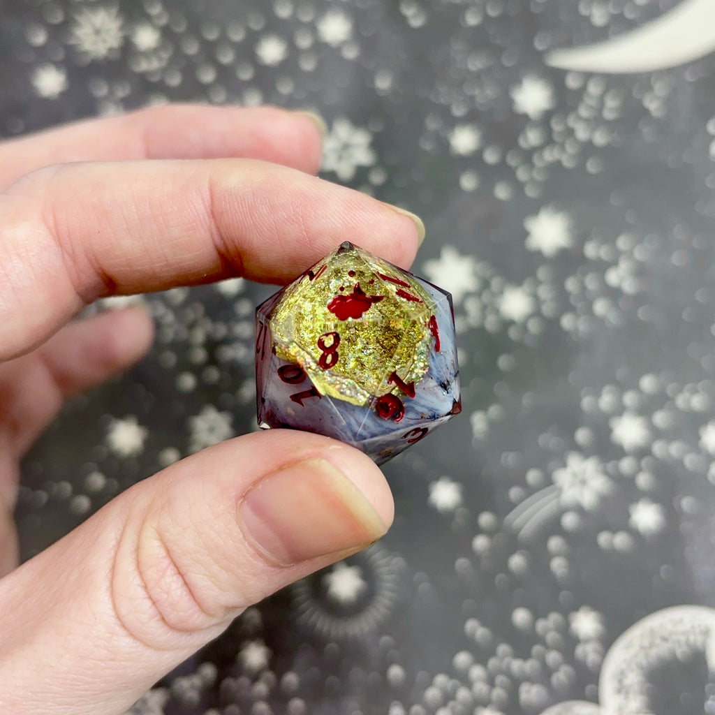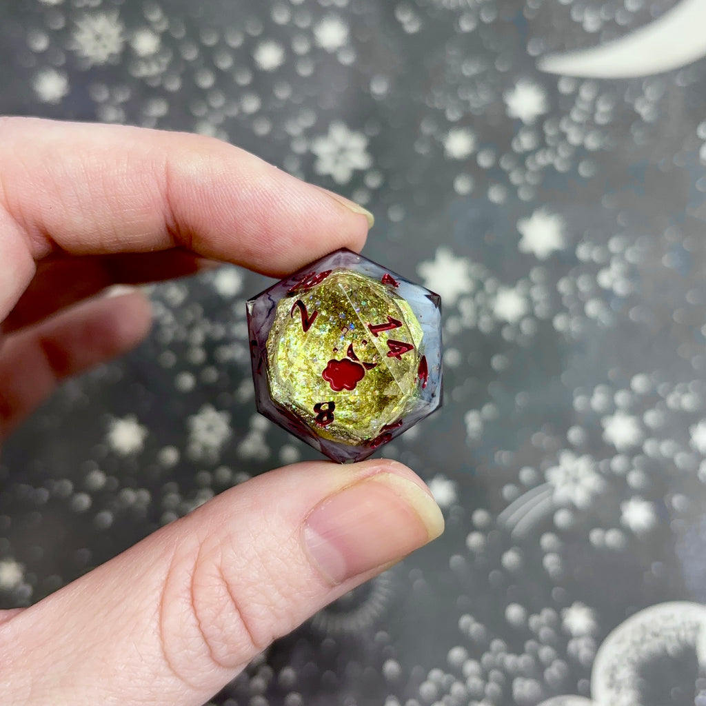 Disclaimer: This product is handmade and is susceptible to minor marks, sanding inconsistencies, gaps in inking, etc. I do my best to clearly specify and identify any quirks, but because everything I sell is personally crafted, occasionally I might miss something. No quirks will have a negative effect on the playability of the dice.