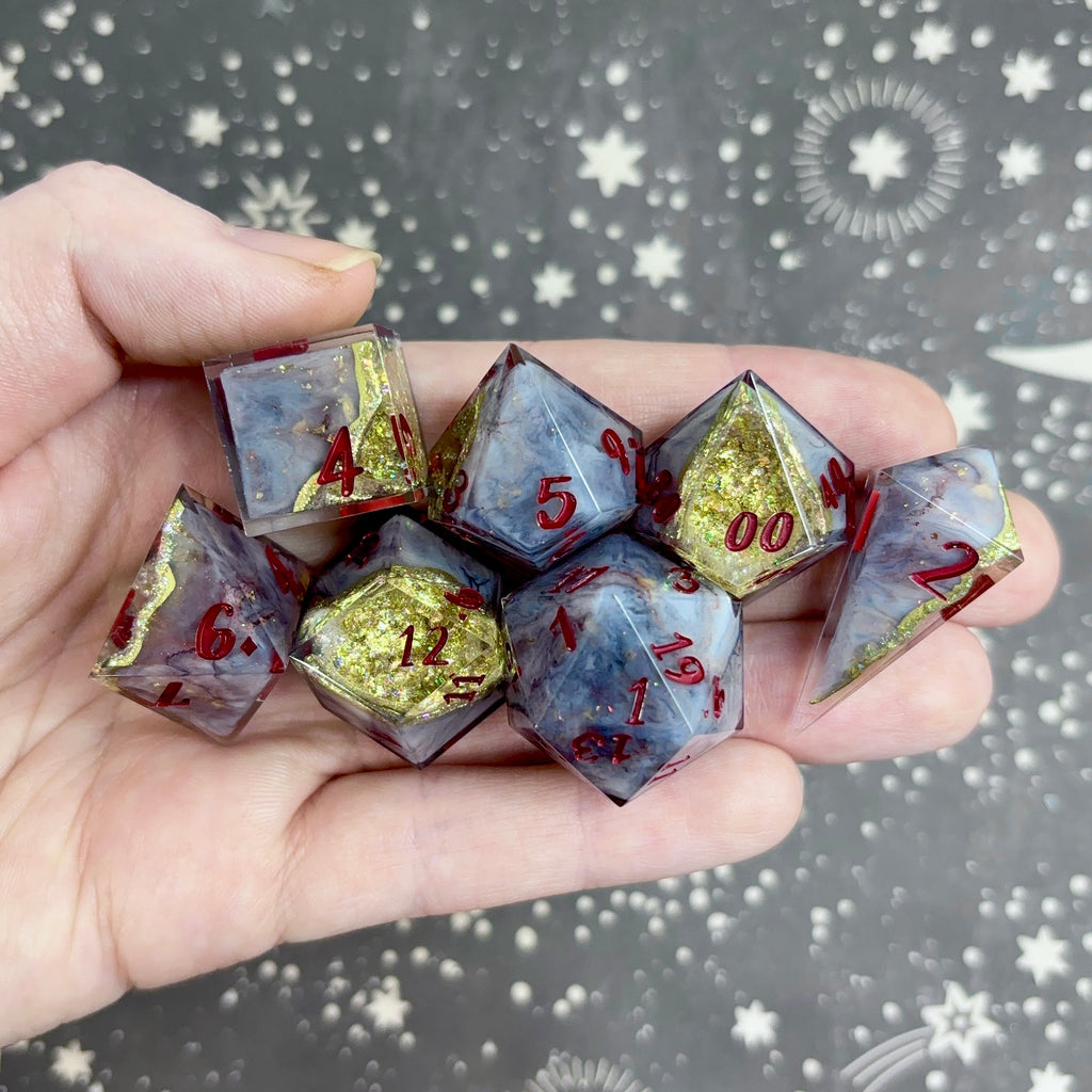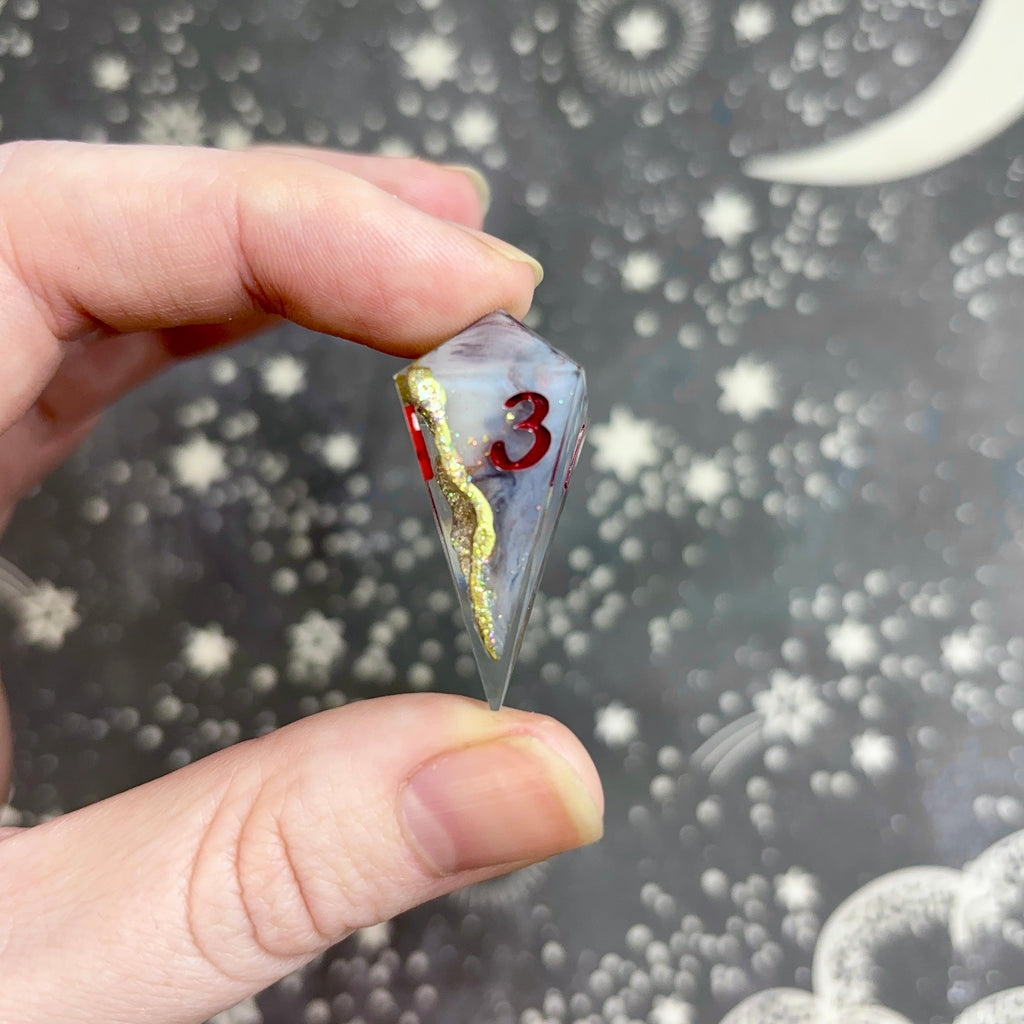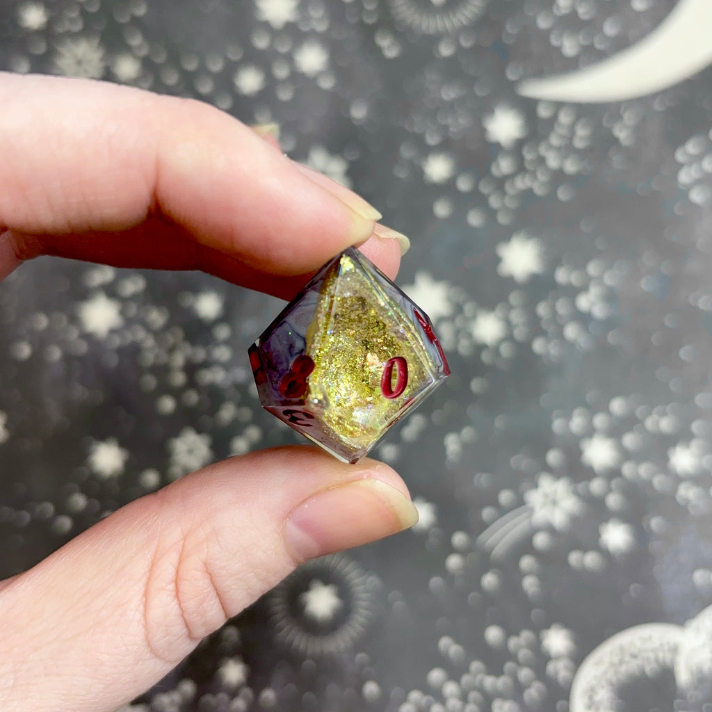 Disclaimer: This product is handmade and is susceptible to minor marks, sanding inconsistencies, gaps in inking, etc. I do my best to clearly specify and identify any quirks, but because everything I sell is personally crafted, occasionally I might miss something. No quirks will have a negative effect on the playability of the dice.