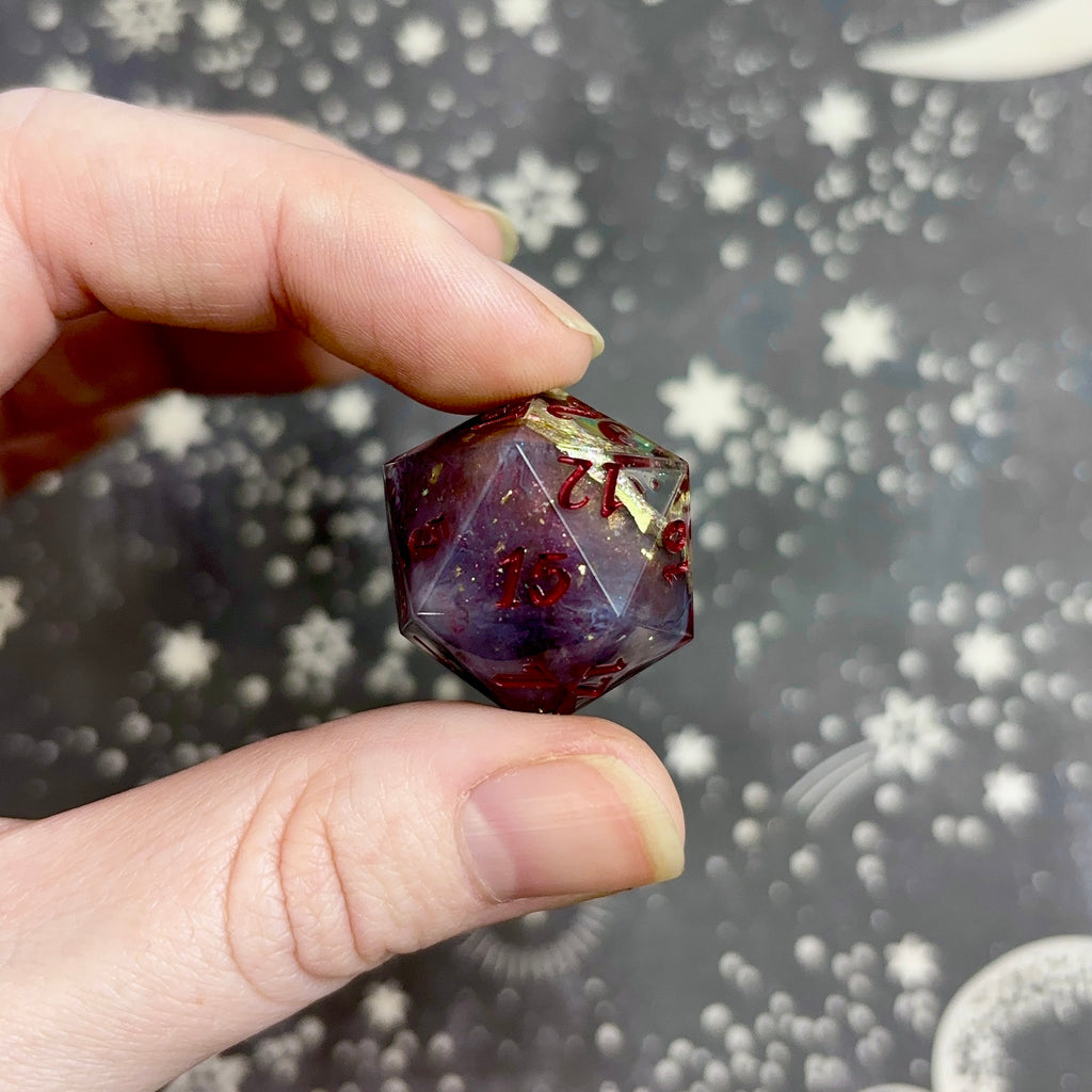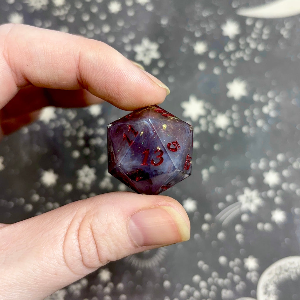 Disclaimer: This product is handmade and is susceptible to minor marks, sanding inconsistencies, gaps in inking, etc. I do my best to clearly specify and identify any quirks, but because everything I sell is personally crafted, occasionally I might miss something. No quirks will have a negative effect on the playability of the dice.